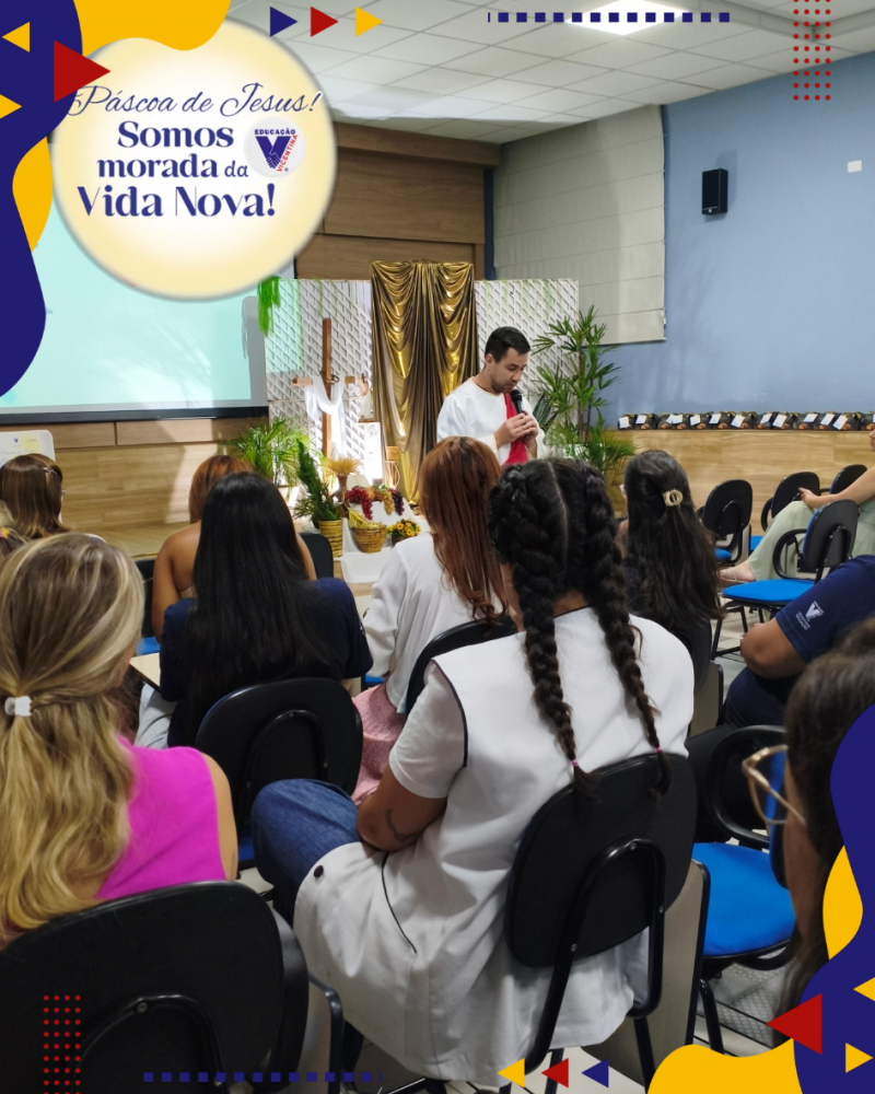 Na semana de Páscoa, nossa comunidade educativa vivenciou um momento profundo de fé, reflexão e encontro com o Ressuscitado. Em meio à rotina, fizemos uma pausa para recordar a grande verdade que sustenta nossa esperança: Jesus está vivo e deseja habitar em nós!
