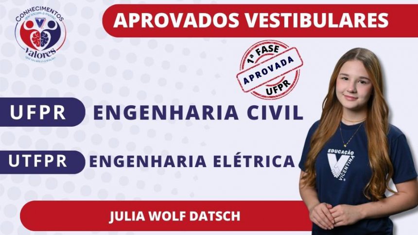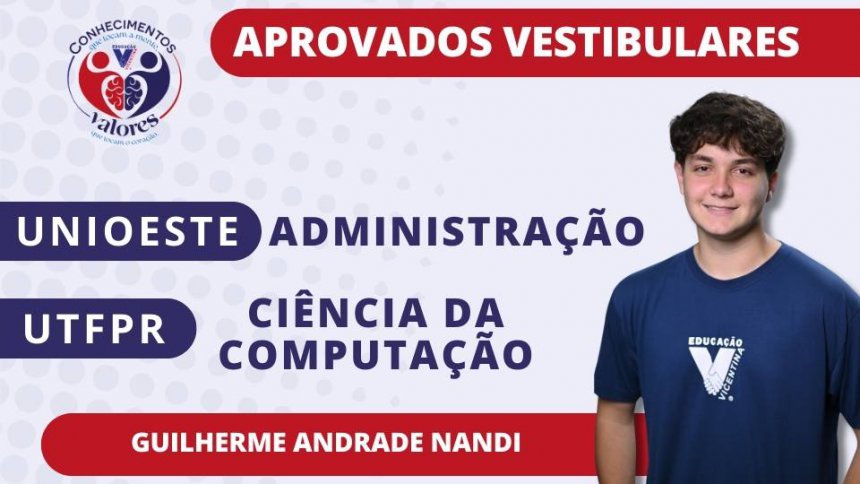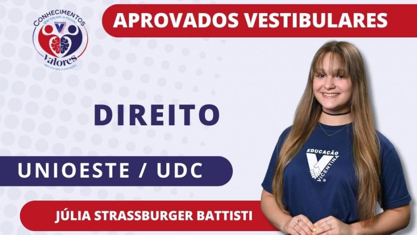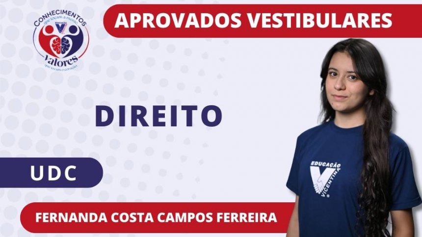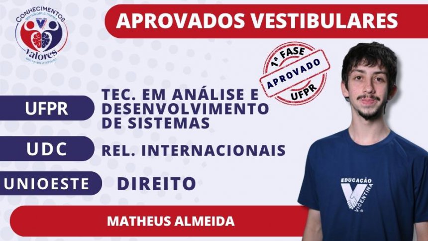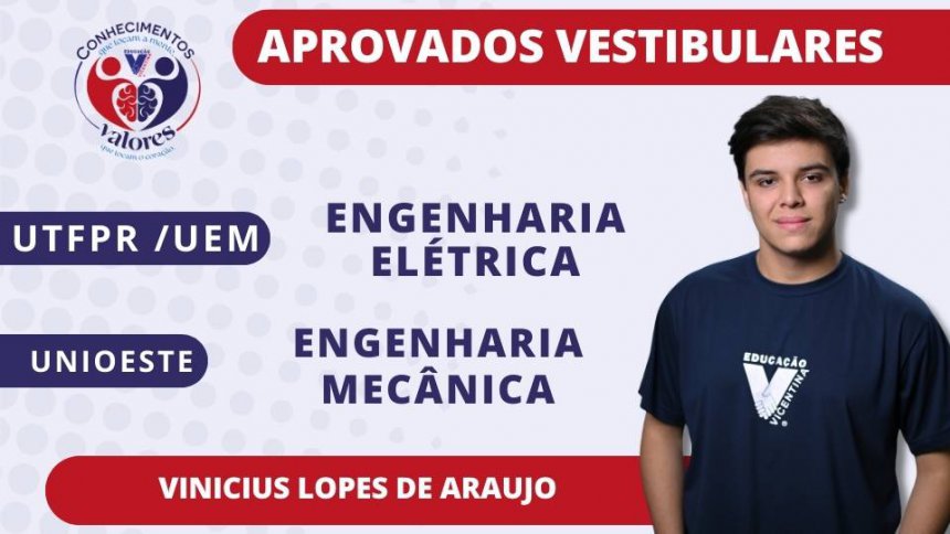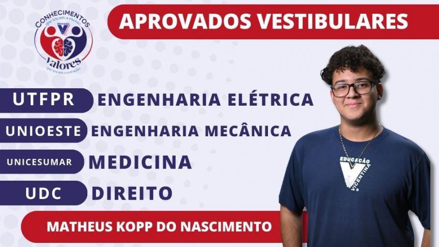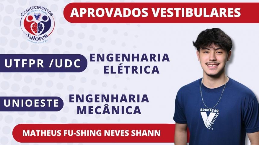 Saudamos nossos estudantes vicentinos pela aprovação nos vestibulares prestados, que abrem caminho para um novo momento de suas vidas acadêmica e profissional. A Comunidade Vicentina vibra com vocês!
