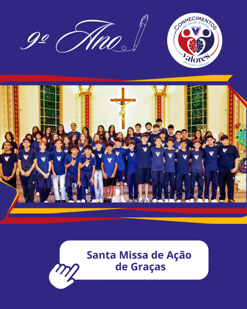 Para celebrar essa passagem tão significativa, nossa comunidade escolar vivenciou uma Missa em Ação de Graças, expressando gratidão pelo percurso trilhado e confiança no novo ciclo que se inicia. Foi um momento de reflexão, acolhida e partilha entre estudantes, famílias e educadores, reafirmando o cuidado e a presença que acompanham nossos jovens ao longo de sua trajetória escolar.