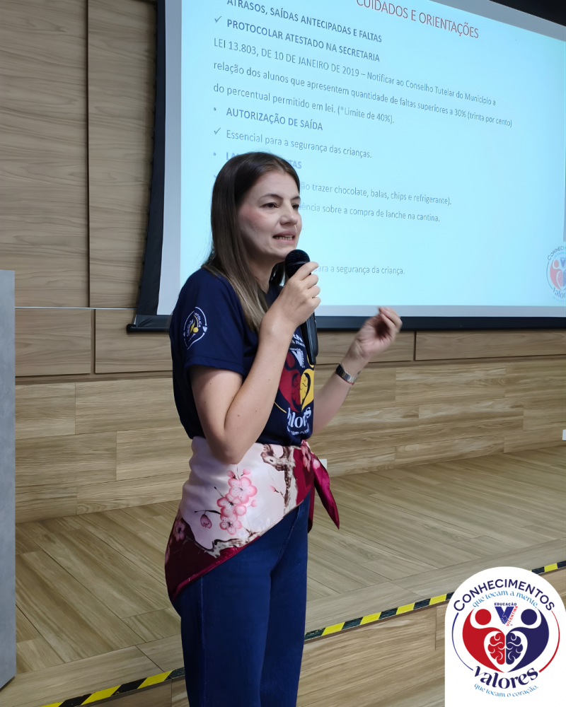 A programação contou ainda com um momento de formação e diálogo conduzido pela assistente social Larissa, que trouxe importantes reflexões sobre a proteção da infância, o cuidado com o uso das tecnologias e a responsabilidade compartilhada entre família e escola diante dos desafios do mundo atual.